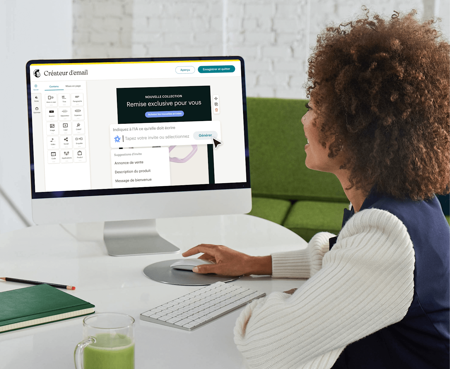 L'optimiseur de contenu de Mailchimp peut vous aider à optimiser le contenu de vos e-mails en analysant leur capacité à être survolés, les visuels, les liens et la typographie. Recevez des suggestions axées sur les données pour améliorer vos résultats !